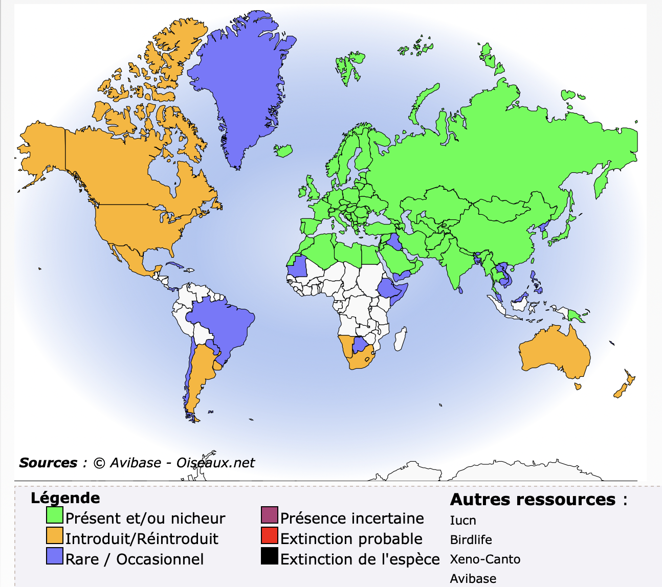 đŽ EspĂšce invasive en AmĂ©rique du Nord : introduite Ă New York en 1890 par un passionnĂ© de Shakespeare qui voulait voir toutes les espĂšces mentionnĂ©es dans ses Ćuvres voler en libertĂ© (oui, vraiment !).