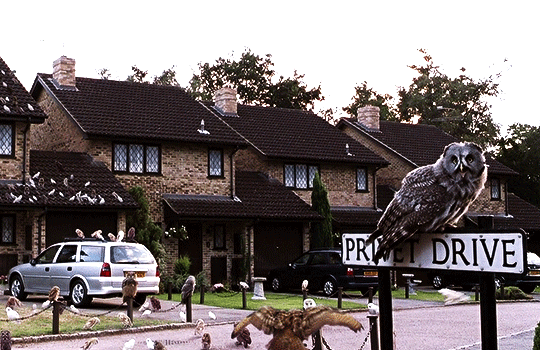 La fameuse scĂšne oĂč des chouettes envahissent Privet Drive a Ă©tĂ© tournĂ©e avec plusieurs oiseaux diffĂ©rents, puis retouchĂ©e en post-production pour donner lâillusion dâune nuĂ©e organisĂ©e.